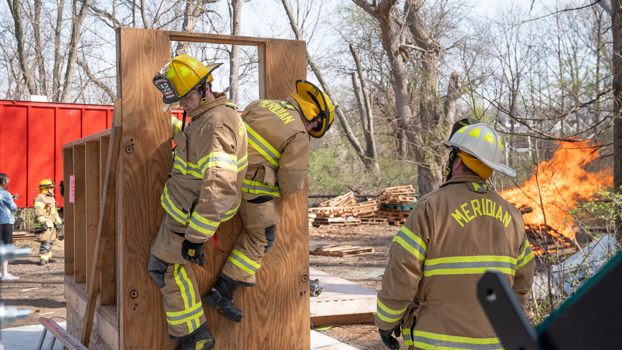 The firefighters' duties are varied and include activities such as pre-incident surveys of local buildings, fire prevention/public education programs, station tours, equipment and station maintenance, and ongoing training in fire, EMS, and specialized rescue services.