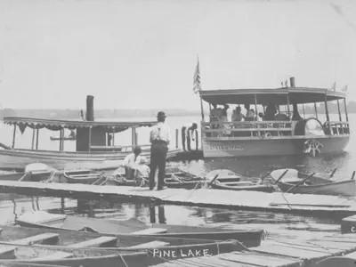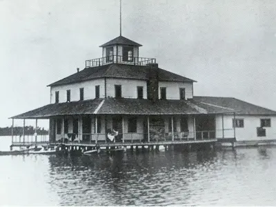 The three digitized black-and-white photos included in the gallery showcase the earlier days of Lake Lansing! The years of all three images are unknown, but they show boats from when it was originally named Pine Lake, the former carousel at the Lake Lansing Park South amusement park, and the former Izzer Club, a gentlemen's social club built in the middle of the lake in the 1890s.